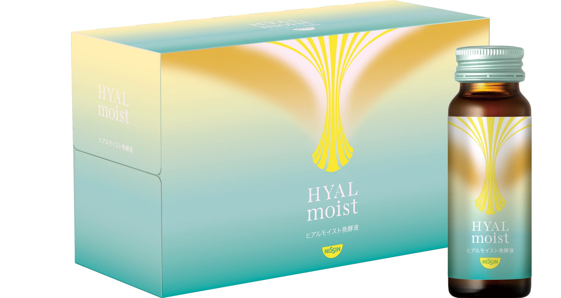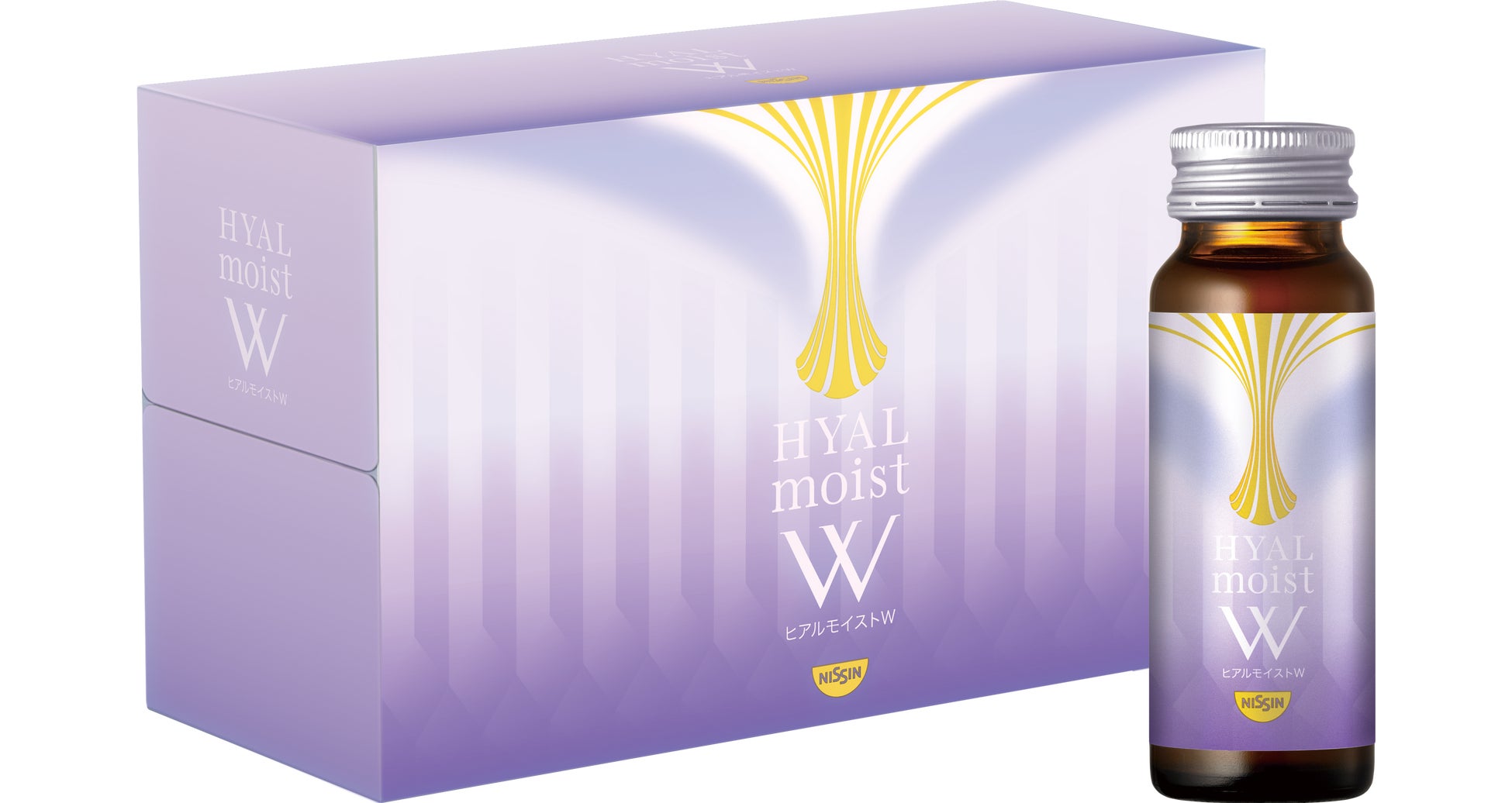 からだの中のヒアルロン酸に着目した日清食品グループ独自の「ヒアルモイスト乳酸菌」とコラーゲンを配合した美容ドリンク。1本 (50ml) の中にヒアルモイスト乳酸菌液を20,000mg、コラーゲンを5,000mg配合しています。甘さを抑えたピーチ味で毎日続けやすく、カロリーを従来品と比べて40%オフしました。カロリーは、1本あたり28kcalです。