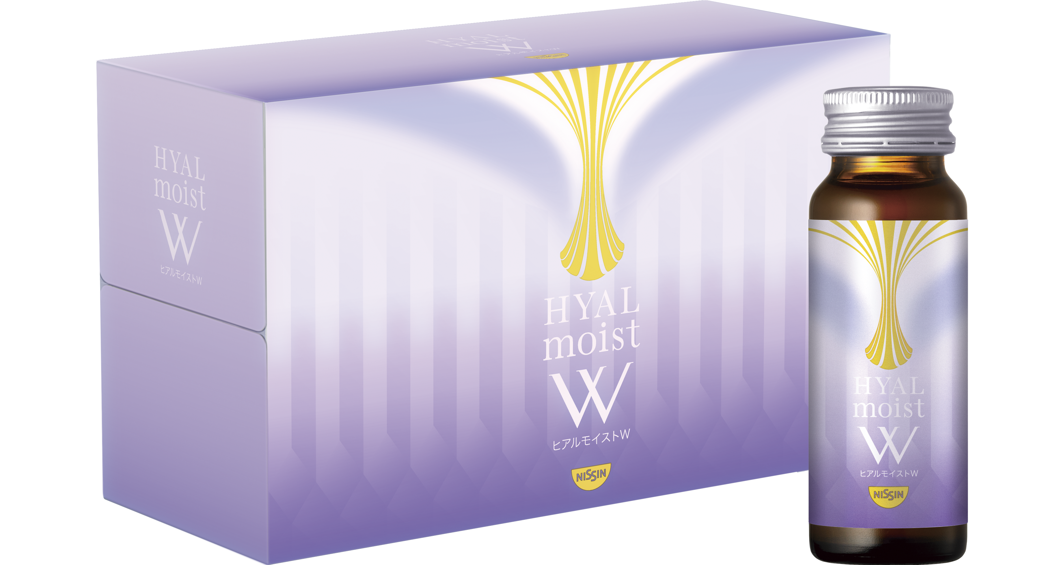 からだの中のヒアルロン酸に着目した日清食品グループ独自の「ヒアルモイスト乳酸菌」とコラーゲンを配合した美容ドリンク。1本 (50ml) の中にヒアルモイスト乳酸菌液を20,000mg、コラーゲンを5,000mg配合しています。甘さを抑えたピーチ味で毎日続けやすく、カロリーを従来品と比べて40%オフしました。カロリーは、1本あたり28kcalです。