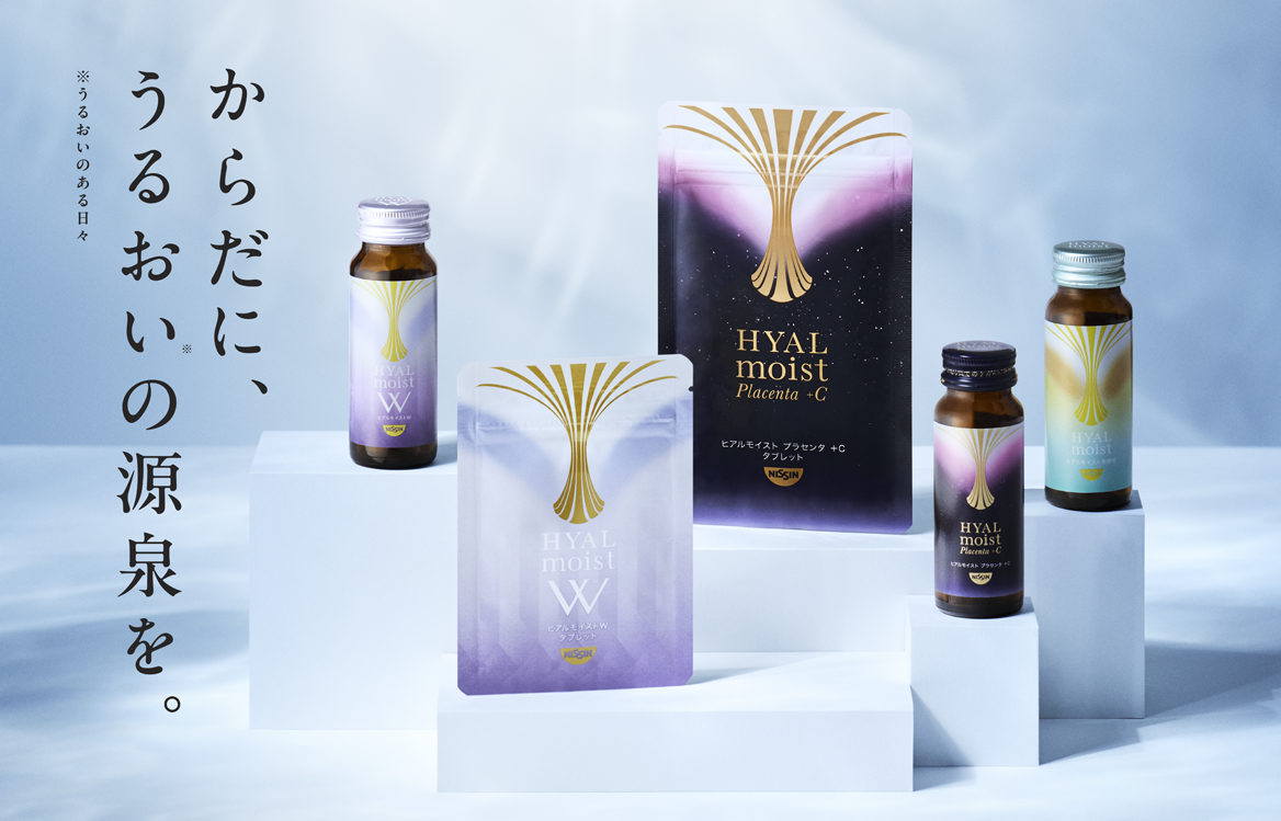 「ヒアルモイスト」シリーズは、明るく、うるおいに満ちた毎日を過ごしたい方に向けた、美容乳酸菌サプリメントです。からだの中のヒアルロン酸に着目した研究によって発見された、日清食品グループ独自の乳酸菌「ヒアルモイスト乳酸菌」を配合しています。2019年1月の発売以来、『乳酸菌による美容への新しいアプローチ』として注目を集め、美容への関心が高い方を中心にご好評をいただいています。