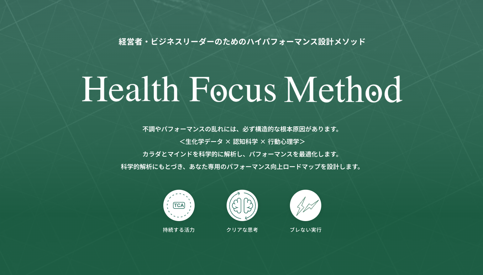 Health Focus Methodの本質は、人と組織を本来の機能が発揮できる状態へ導くことにあります。