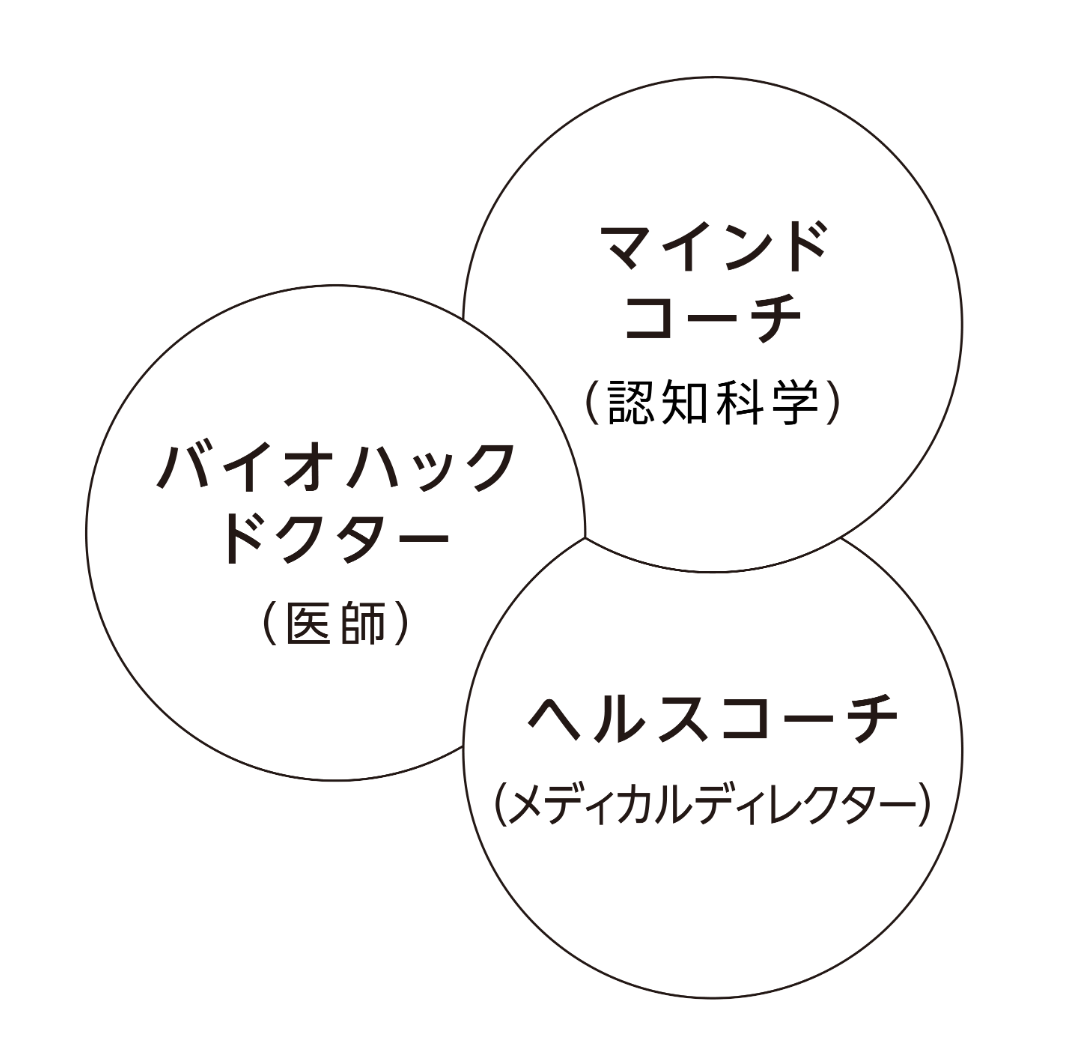 本プログラムに参画する医師は、血液・ホルモン・腸内環境などのバイオロジカルデータを医学的に評価するだけでなく、認知科学や行動心理学に基づくコーチング理論、さらには最先端のバイオロジカル検査におけるデータアナリストとしての訓練を受けています。「身体」と「認知(マインド)」の両輪を同時に扱えることが最大の特徴です。