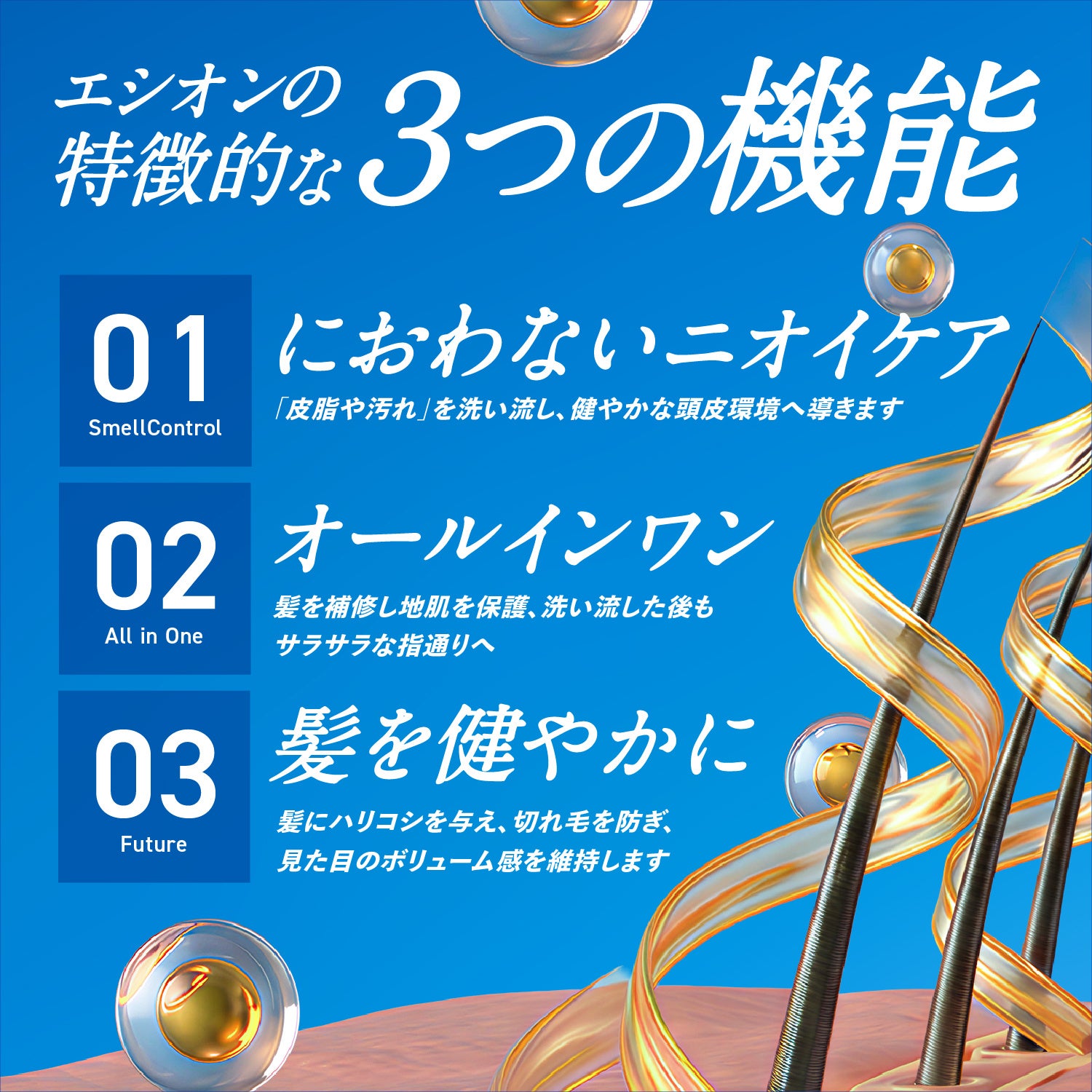 「エシオン スカルプケア アミノシャンプー」は、「いい髪は、いい地肌から」をコンセプトに、シャンプー本来の役割である“洗うこと”を再定義して開発された無香料シャンプーです。