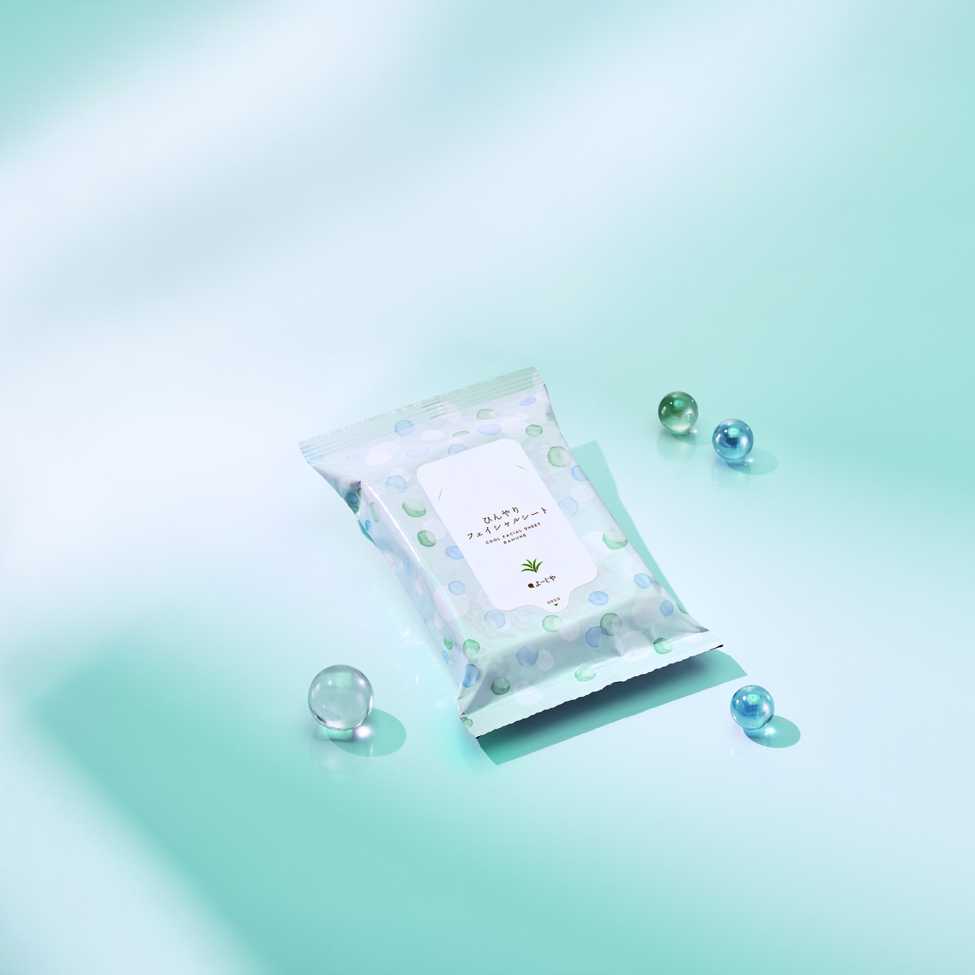 あぶらとり紙の品質や使い心地はそのままに、アロエの乾燥葉を漉き込みました。見た目も涼しげなグリーン色で使うたびに心おどるあぶらとり紙です。表紙の水玉はしゅわしゅわっとラムネの泡をイメージしており、擦るとほんのりラムネの香りがします。