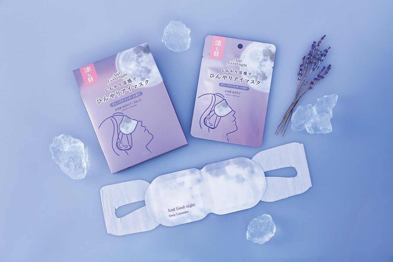 天然精油の安らぎアロマとおやすみ前の3stepで心地よい眠りをサポートする『アンドグッドナイト』(株式会社グローバルプロダクトプランニング:東京都渋谷区南平台町)から、暑い季節のリラックスタイムにぴったりの「 ひんやりアイマスク」に、新フレグランス「ディープラベンダー」と「サイレントフォレスト」が加わり3月 31日に発売します。日常のほてりや暑さを感じる時のクールダウンに、目のリフレッシュアイテムとして、「ミントラベンダー」と合わせて全3種のラインアップで展開します。