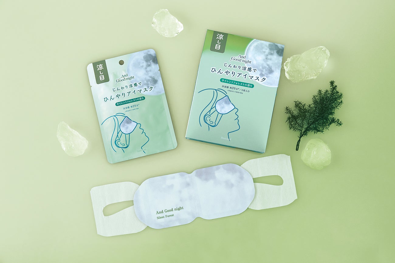 天然精油の安らぎアロマとおやすみ前の3stepで心地よい眠りをサポートする『アンドグッドナイト』(株式会社グローバルプロダクトプランニング:東京都渋谷区南平台町)から、暑い季節のリラックスタイムにぴったりの「 ひんやりアイマスク」に、新フレグランス「ディープラベンダー」と「サイレントフォレスト」が加わり3月 31日に発売します。日常のほてりや暑さを感じる時のクールダウンに、目のリフレッシュアイテムとして、「ミントラベンダー」と合わせて全3種のラインアップで展開します。