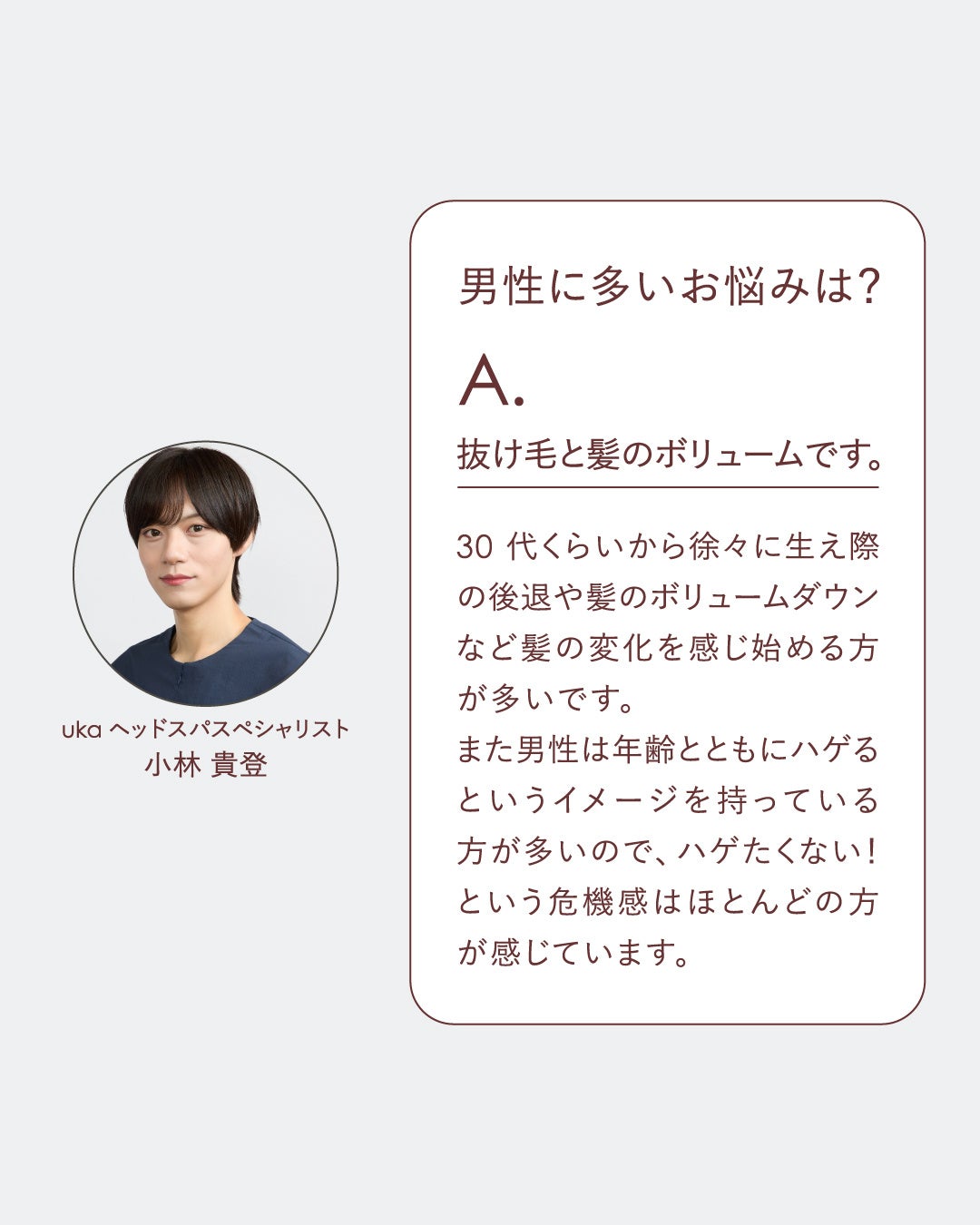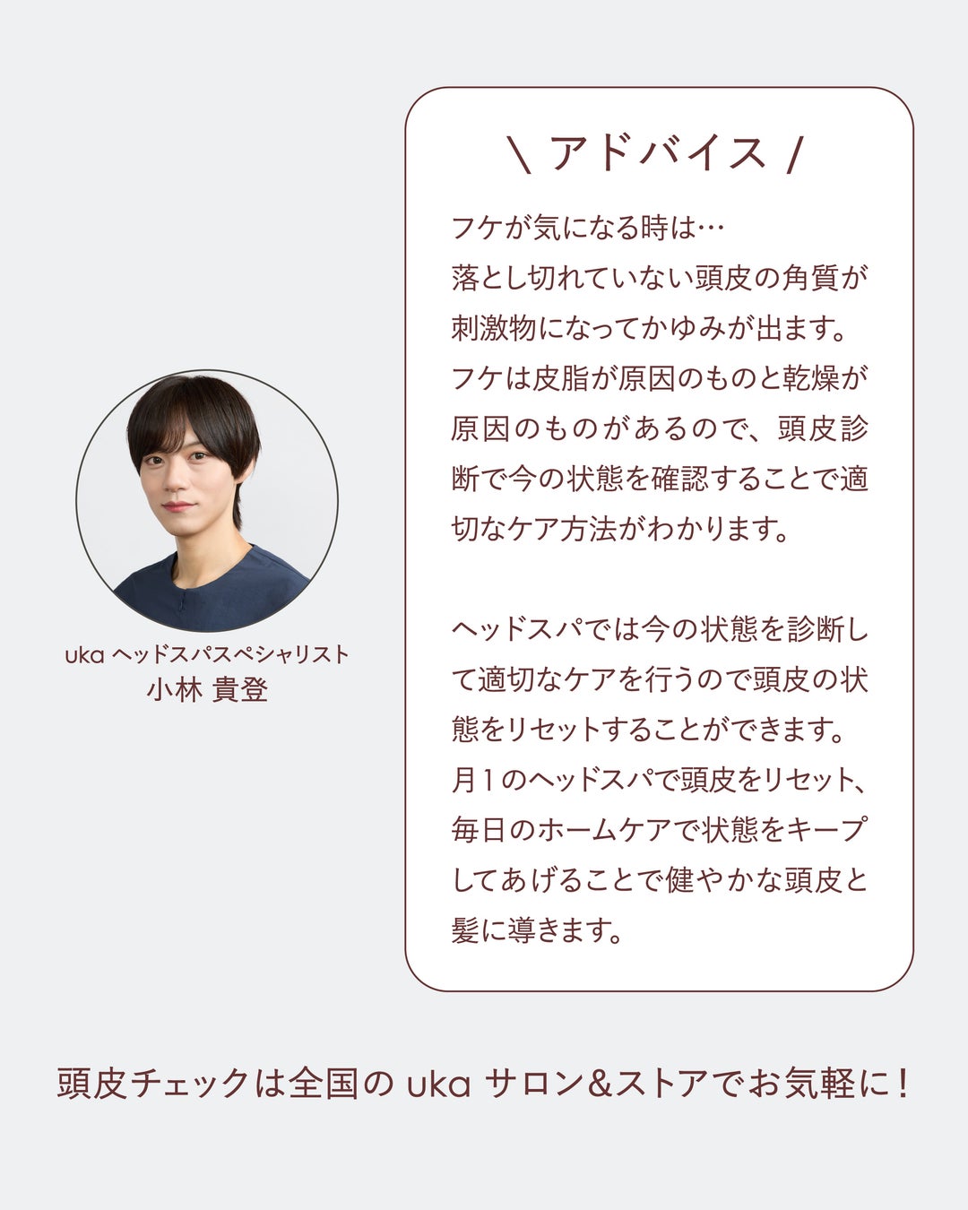 監修は、uka 東京ミッドタウン 六本木所属のヘッドスパリスト小林貴登【毛髪診断士/育毛マイスター】