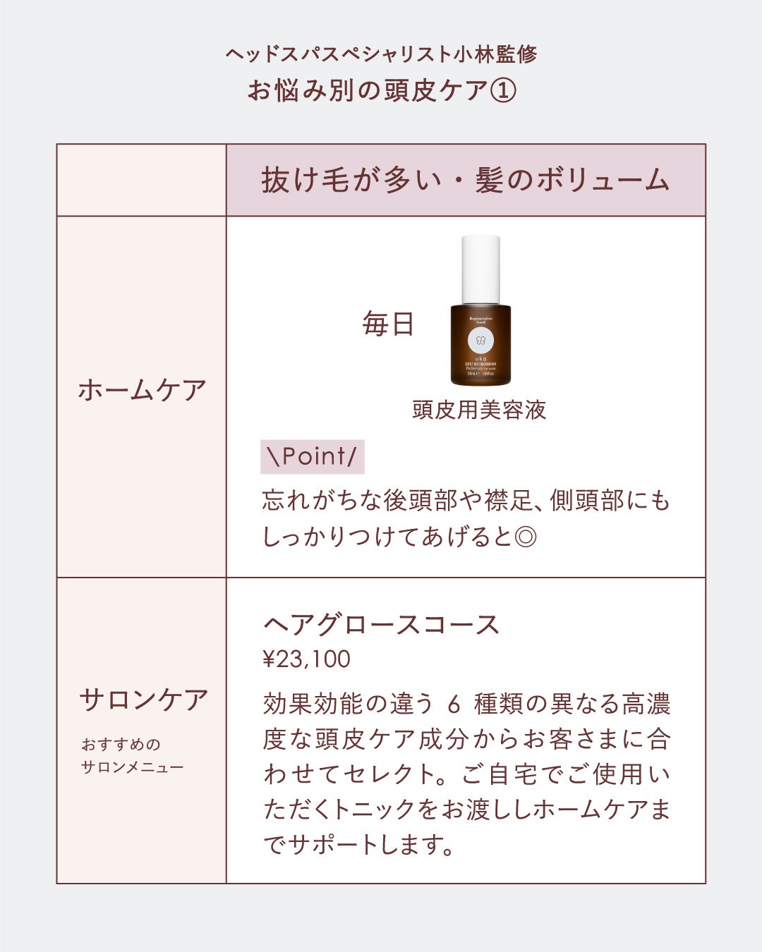 監修は、uka 東京ミッドタウン 六本木所属のヘッドスパリスト小林貴登【毛髪診断士/育毛マイスター】