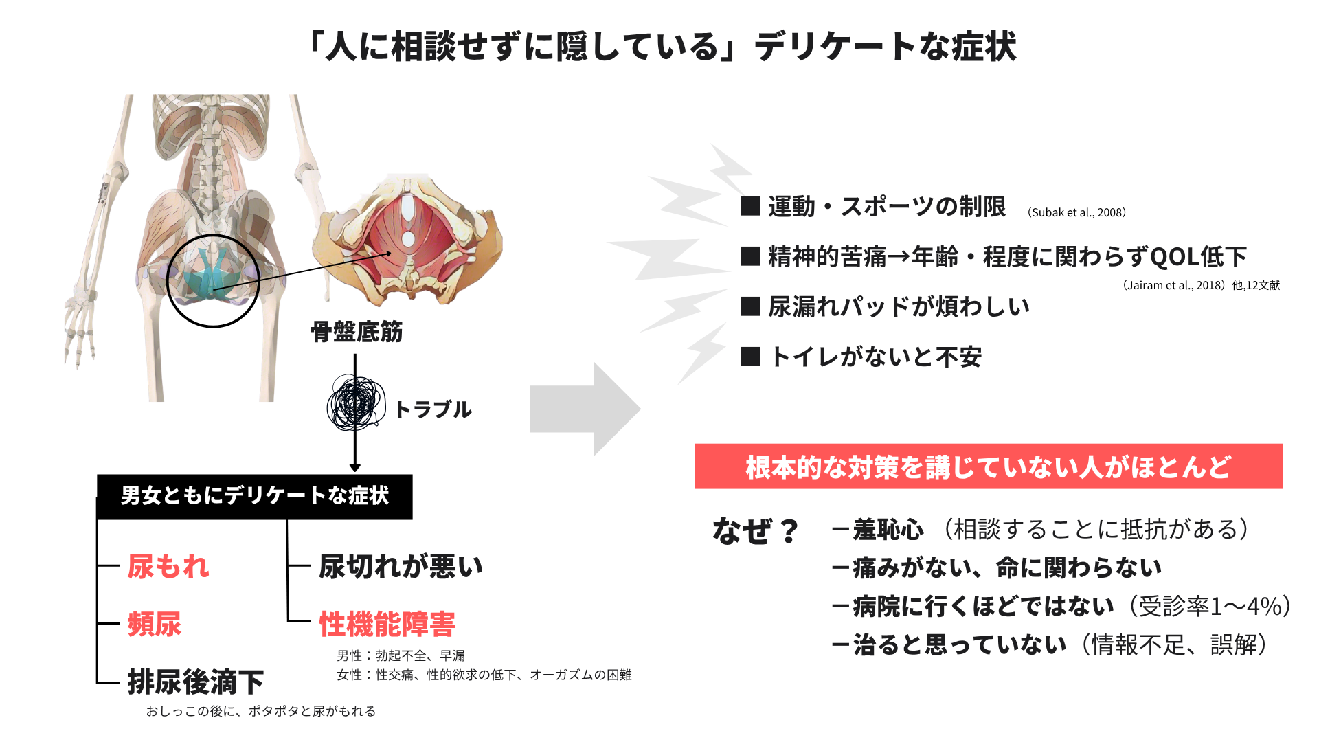 尿漏れや頻尿、性機能に関する悩みなど、骨盤底筋に関わる問題は決して特別なものではありません。