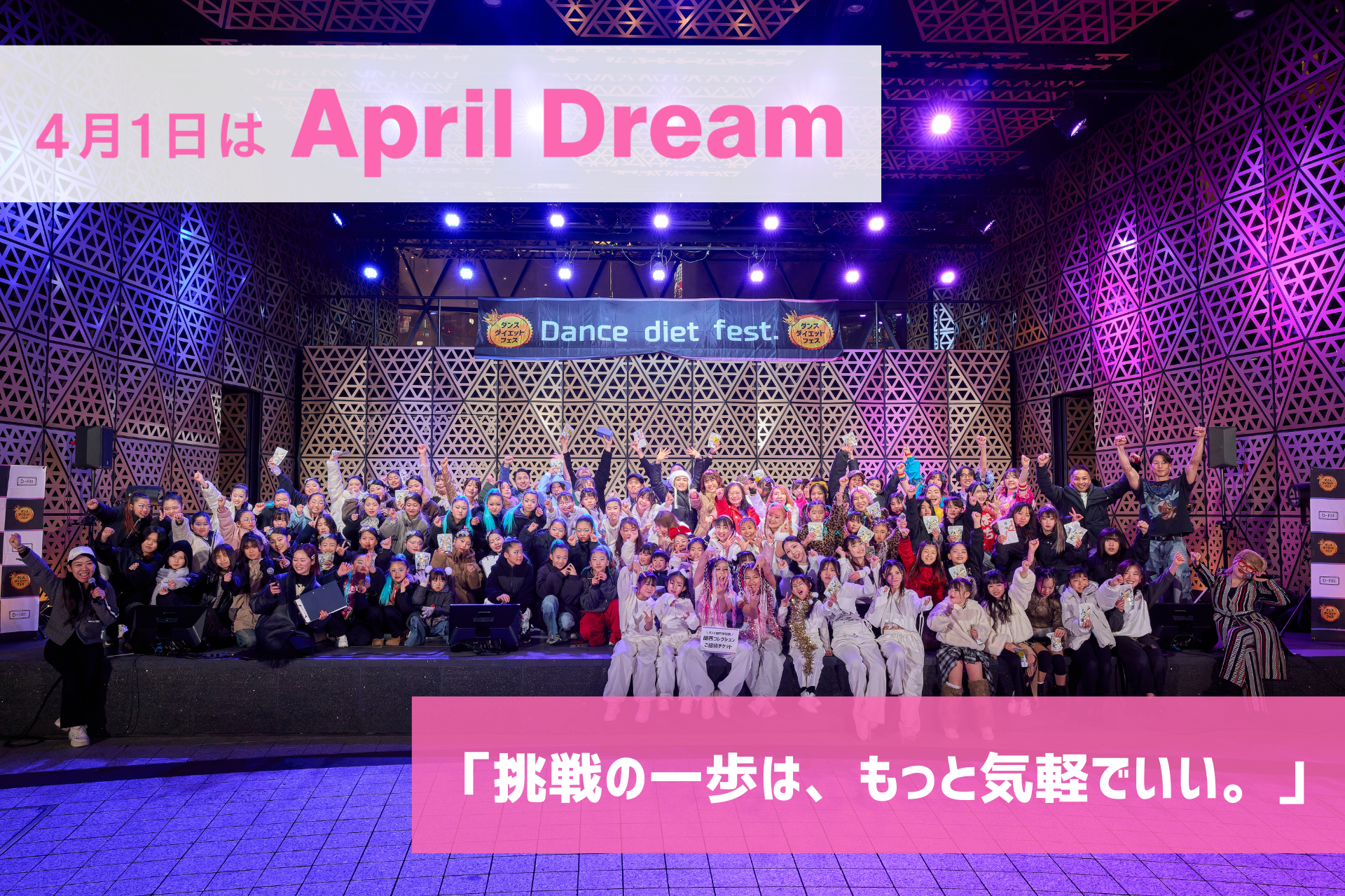 ダンスダイエットフェス実行委員会は、4月1日を夢を発信する日にしようとするApril Dreamに賛同しています。このプレスリリースは「ダンスダイエットフェス」の夢です。