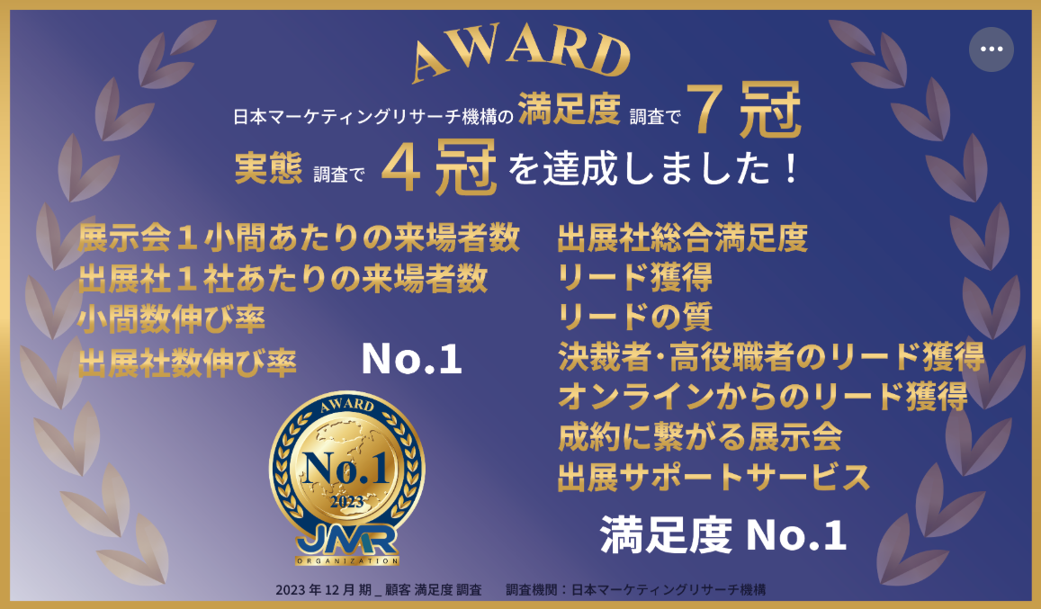 おかげ様でこの度、日本マーケティングリサーチ機構の満足度調査で7冠、実態調査で4冠