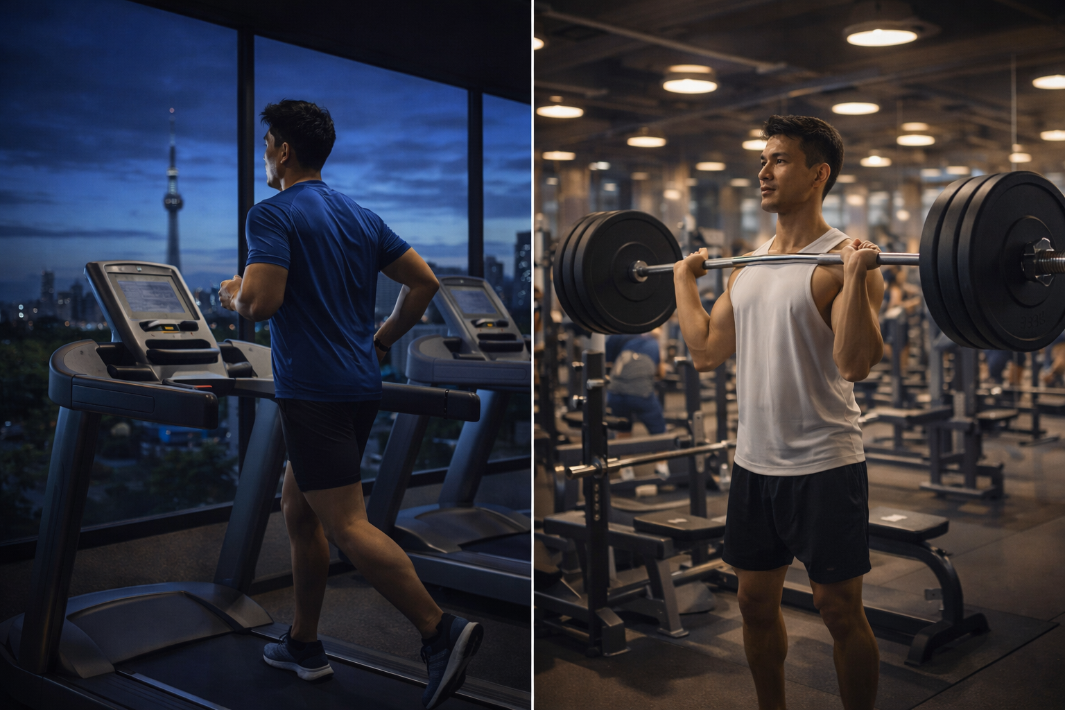 仕事帰りに重いバーベルを持ち上げる人がいます。