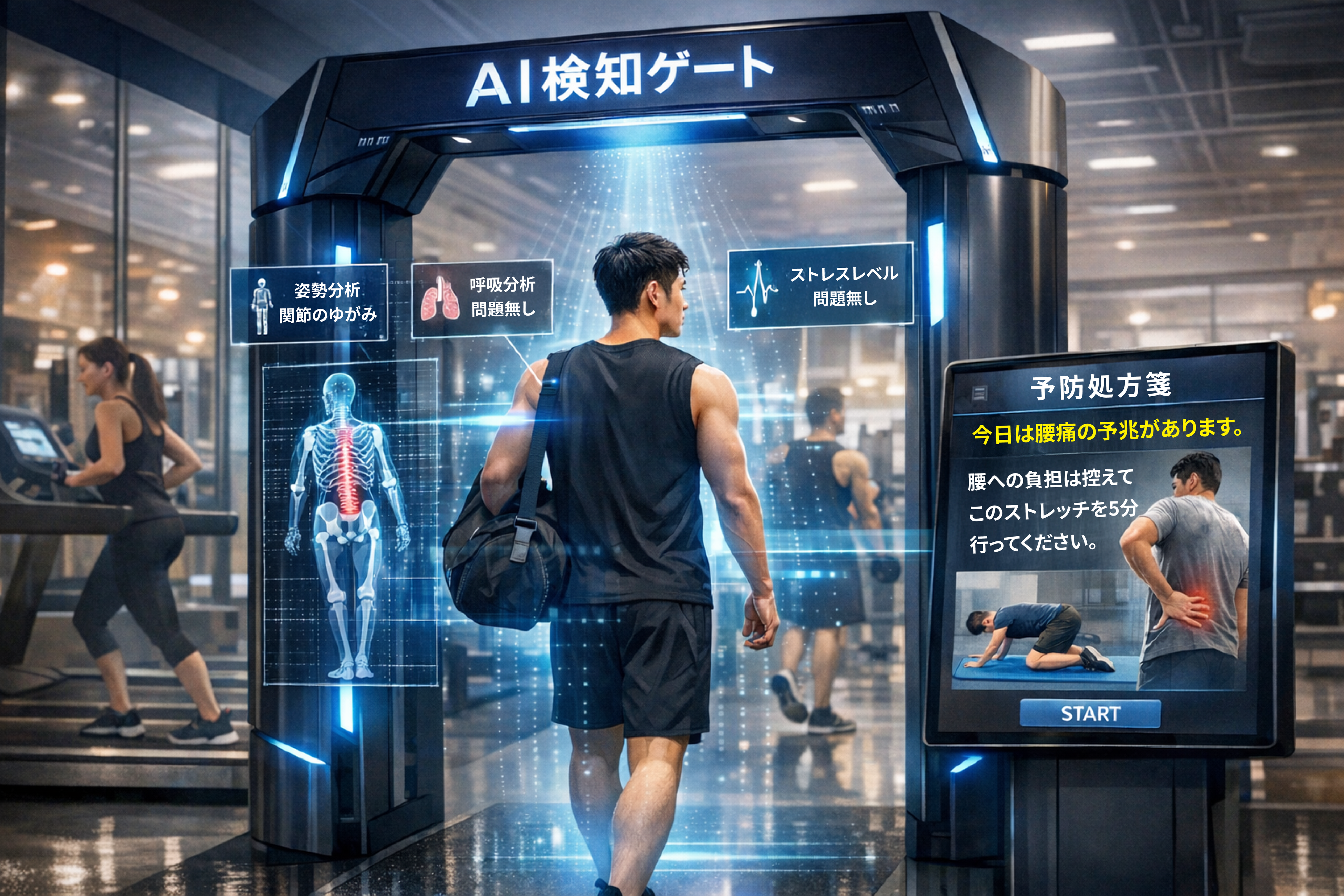 「今日は腰痛の予兆があります。腰への負担は控えて、このストレッチを5分行ってください」といった、パーソナライズされた「予防処方箋」をマシンのモニターに表示。