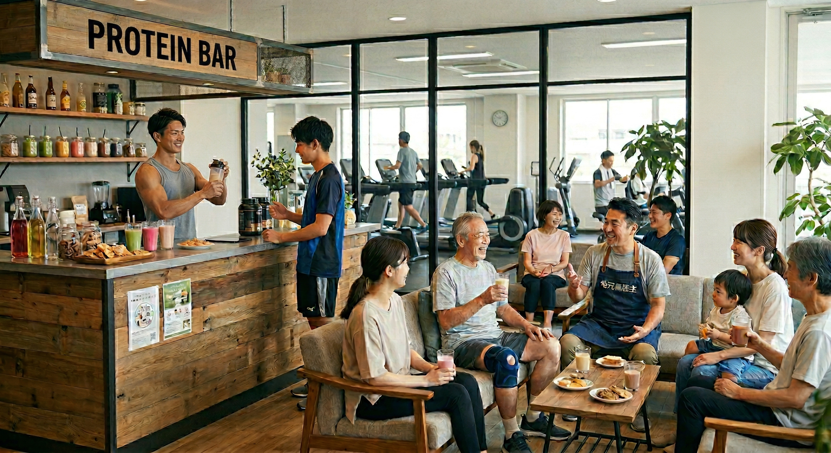 多世代が「健康」という共通言語で、病院の待合室ではなく、ジムのラウンジで笑い合う光景を作ります。