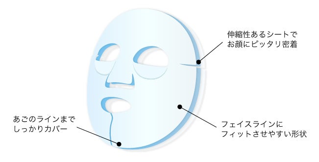 伸縮性が高く、より密着感を高めるための4つのカットラインがあるシートを採用。あごの部分で支え、ぐっと引き上げながら密着させることで、ぎゅっと引き締まった印象へと導きます。