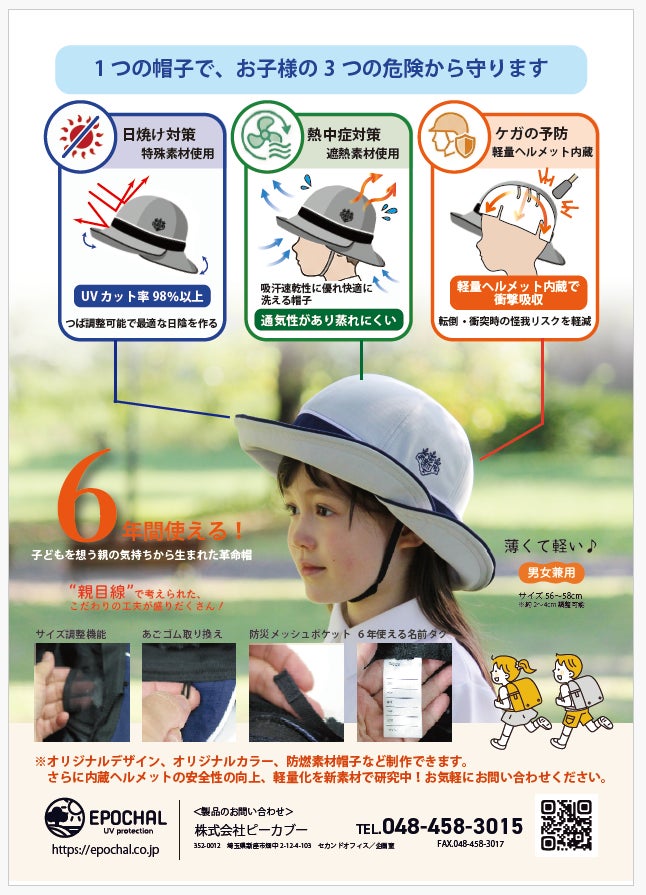 埼玉県を拠点に、紫外線対策ブランド「EPOCHAL(エポカル)」を展開する株式会社ピーカブーは、日本全国で、通学中のすべての子どもたちが安全に登下校できる社会を実現したいという夢を、