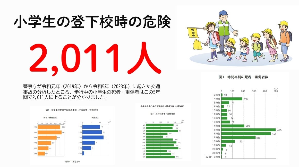 年間500人もの児童が大きなけがをしたり亡くなったりするというデータが警察庁からの発表にありました。小さなけがを入れるとその10倍以上の子供たちが通学中にケガをします。