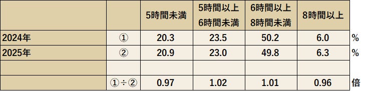 現在、日本人の20.9%が睡眠時間5時間未満という、危機的な「短時間睡眠」の状態にあります。2024年と比較しても、5時間未満の割合は微増しており、日本全体の睡眠不足は解消されるどころか、深刻化の兆しを見せています。