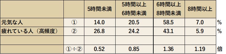 ② 【疲労度との相関】「元気な人」ほど睡眠時間を確保している