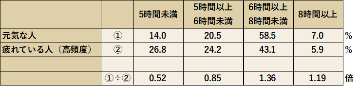 ② 【疲労度との相関】「元気な人」ほど睡眠時間を確保している
