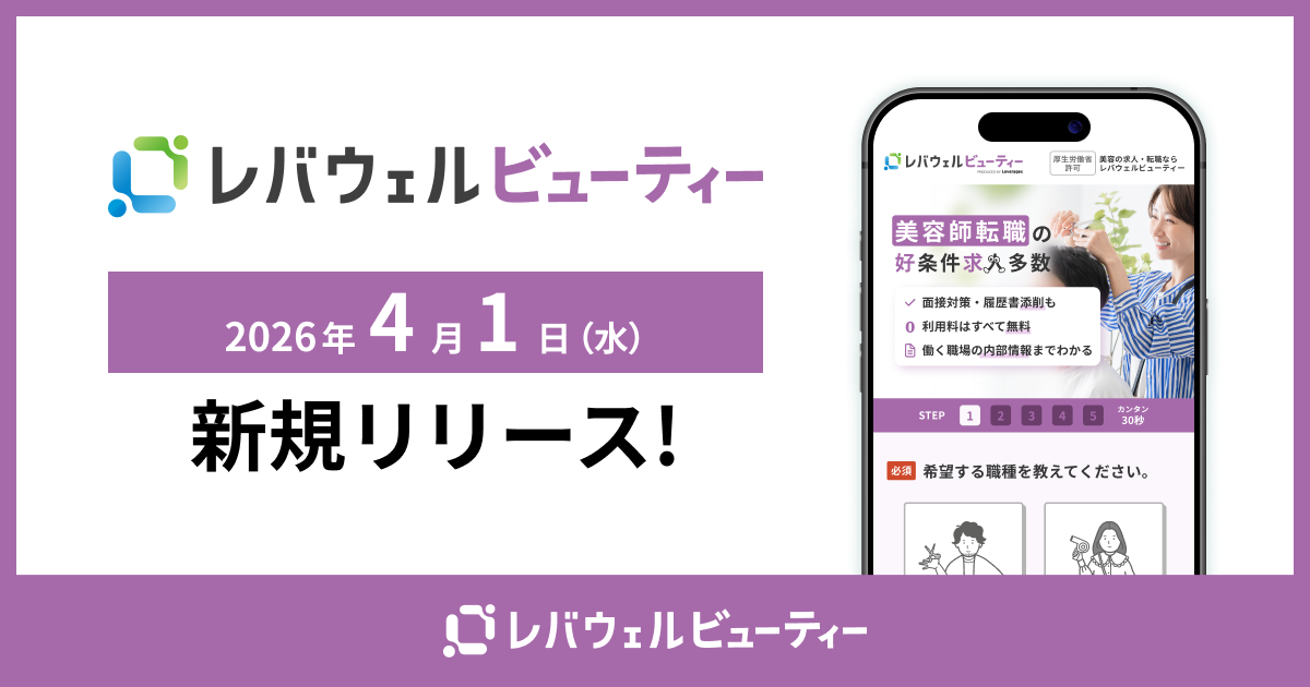 ( https://corp.levwell.jp/ )は、4月1日(水)より、美容師をはじめとする美容業界に特化した求人・転職サービス「レバウェルビューティー」( https://levwell-beauty-agent.jp/lp/1/ )の提供を開始いたします。