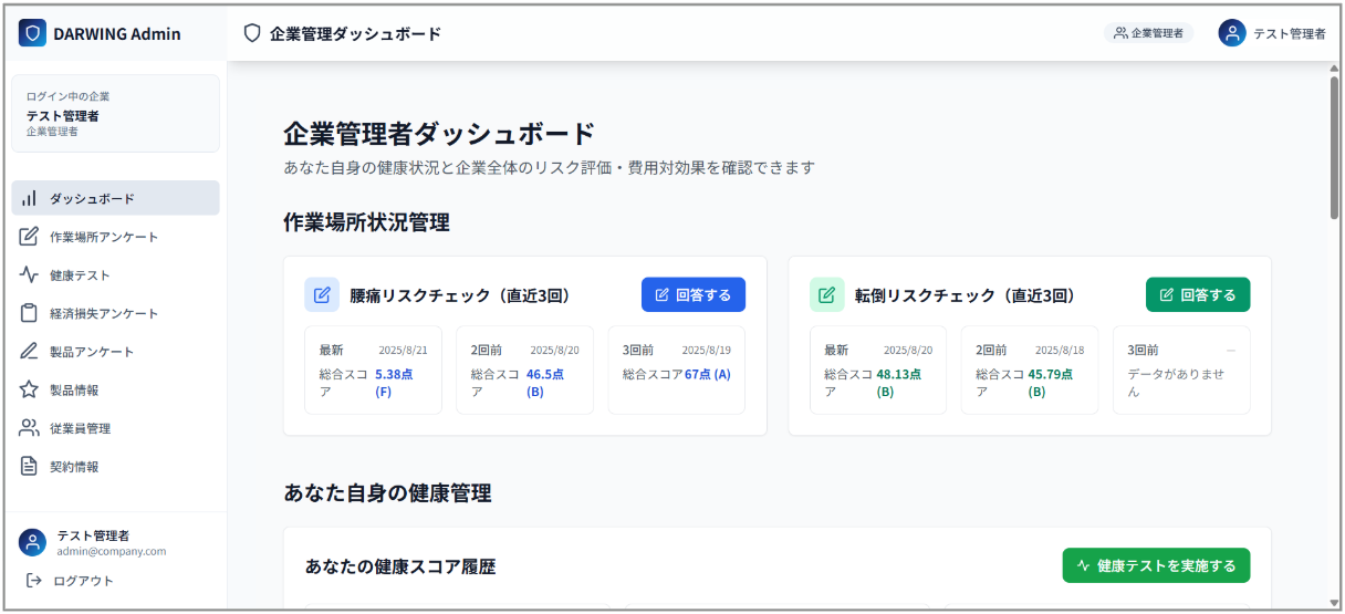 痛くなってから休むのではなく、痛くなる前にプロが守る。私たちの夢を現実にするため、昨年からすでに現場での取り組みをスタートさせているのが、専門家の知見を直接届ける新サービス「DARWING WELLNESS PARTNER」です。企業向けの健康診断のように現場の課題をデータで可視化し、改善へと導きます。