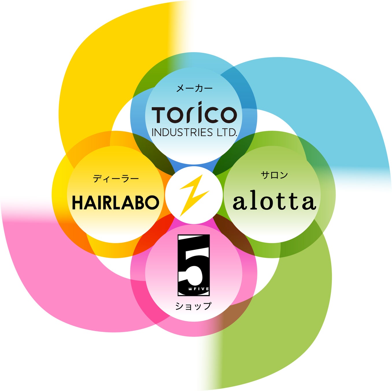 トリコインダストリーズ(torico.co.jp)ヘアラボ(hairlabo.com) ファイブ(five-hair.shop)アロッタ(alotta-hair.com)の4業態によるグループ