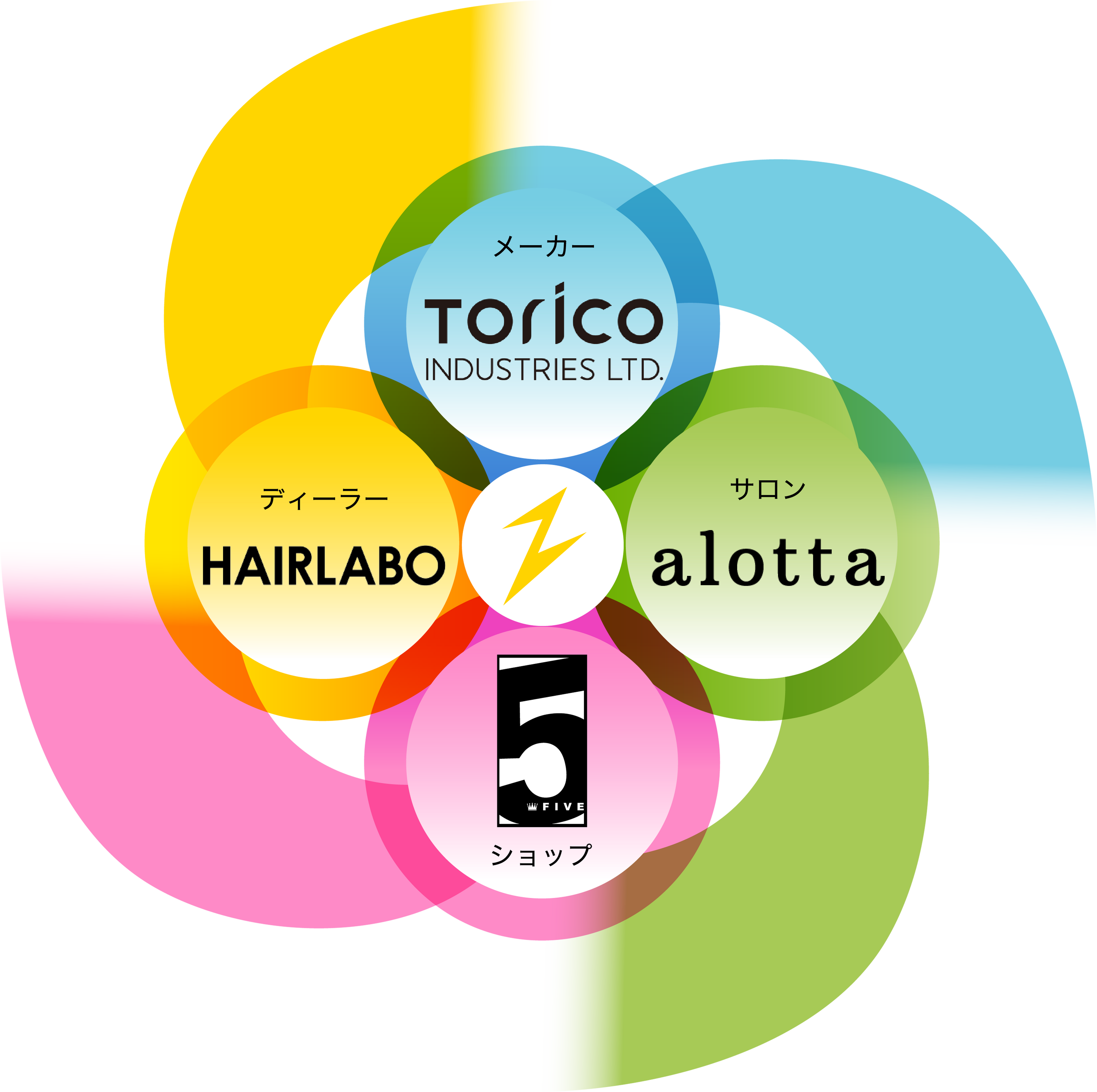 トリコインダストリーズ(torico.co.jp)ヘアラボ(hairlabo.com) ファイブ(five-hair.shop)アロッタ(alotta-hair.com)の4業態によるグループ