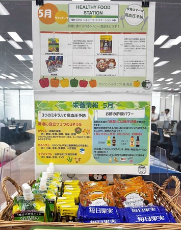 社員食堂がない事業所には、「ヘルシーフードステーション」を設置し、機能性表示食品のレトルト食品やカップ麺、栄養バー、健康飲料など、社内管理栄養士が選定した幅広いヘルシーフードを無償で提供し、栄養バランスの取れた食生活が送れるよう支援しています。