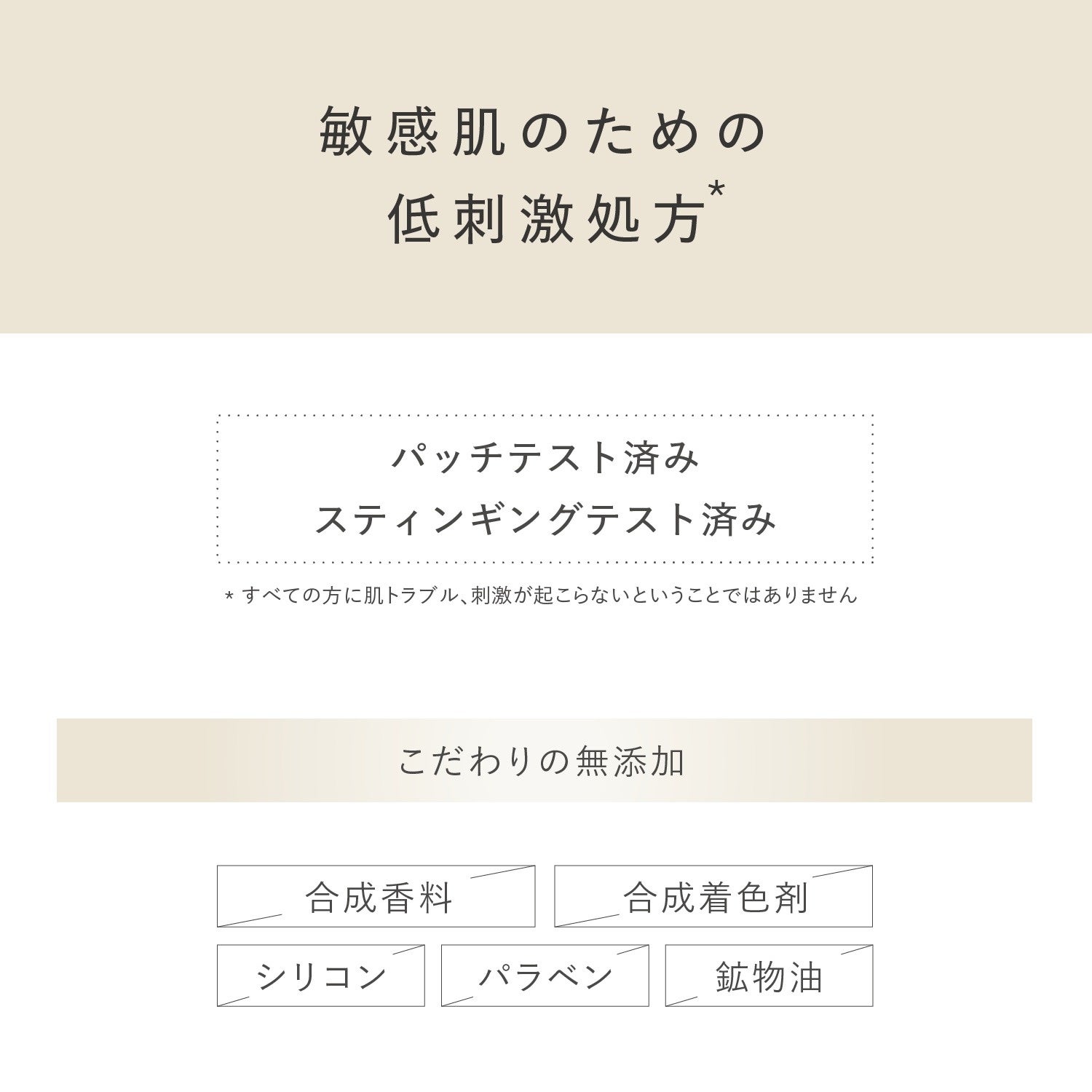 *3 パッチテスト済み、スティンギングテスト済み。すべての方に肌トラブル、刺激が起こらないということではありません