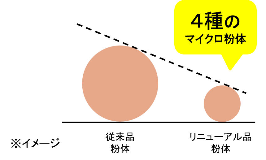 ◇4種のマイクロパウダーを配合。従来品よりもさらに微細な粉体が肌に均一にフィット。毛穴・赤み・色ムラをしっかりカバーしながら、厚塗り感のないなめらかな肌に整えます。