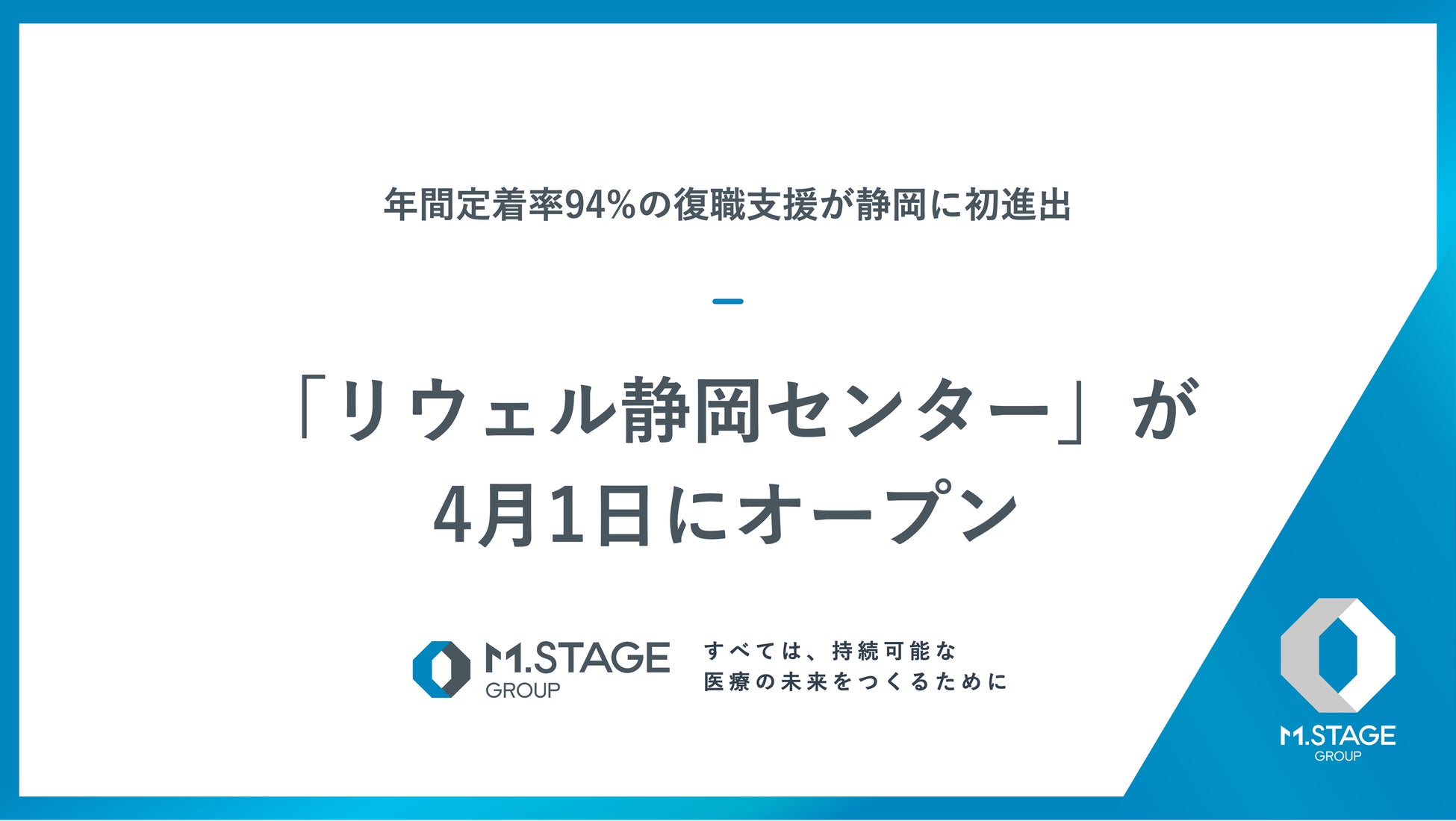 メンタルヘルス不調者の復職支援、就労移行支援サービスを提供する株式会社リウェル(東京都品川区、代表取締役:鈴木友紀夫)は、復職・就労に向けたサポートを行う福祉サービスセンター『リウェルリワークセンター』の3つ目の拠点となる「リウェル静岡センター」を、2026年4月1日(木)に静岡県静岡市にオープンいたします。本センターは、株式会社フジEAPセンターがフランチャイズ店舗として運営いたします。