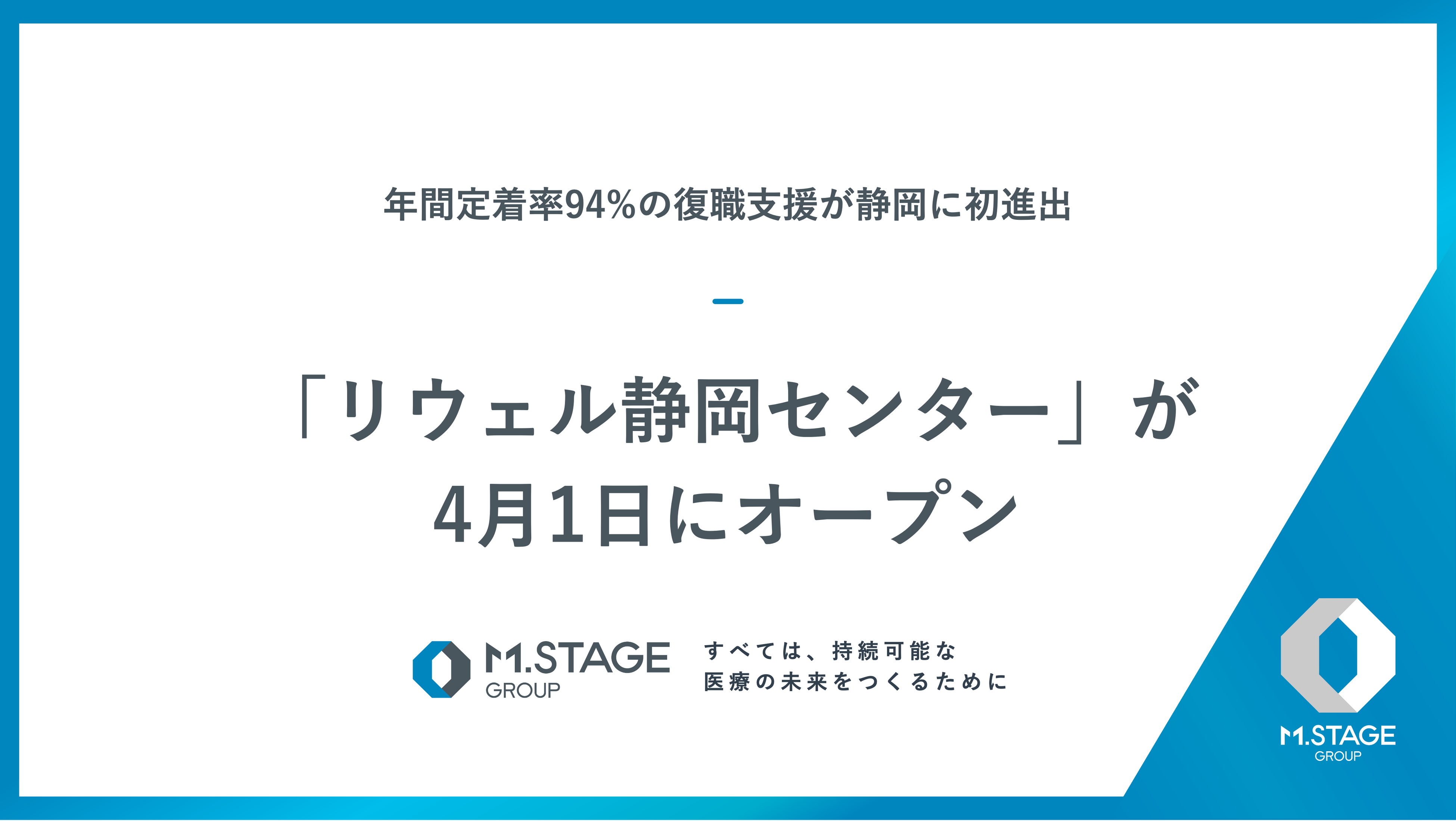 メンタルヘルス不調者の復職支援、就労移行支援サービスを提供する株式会社リウェル(東京都品川区、代表取締役:鈴木友紀夫)は、復職・就労に向けたサポートを行う福祉サービスセンター『リウェルリワークセンター』の3つ目の拠点となる「リウェル静岡センター」を、2026年4月1日(木)に静岡県静岡市にオープンいたします。本センターは、株式会社フジEAPセンターがフランチャイズ店舗として運営いたします。