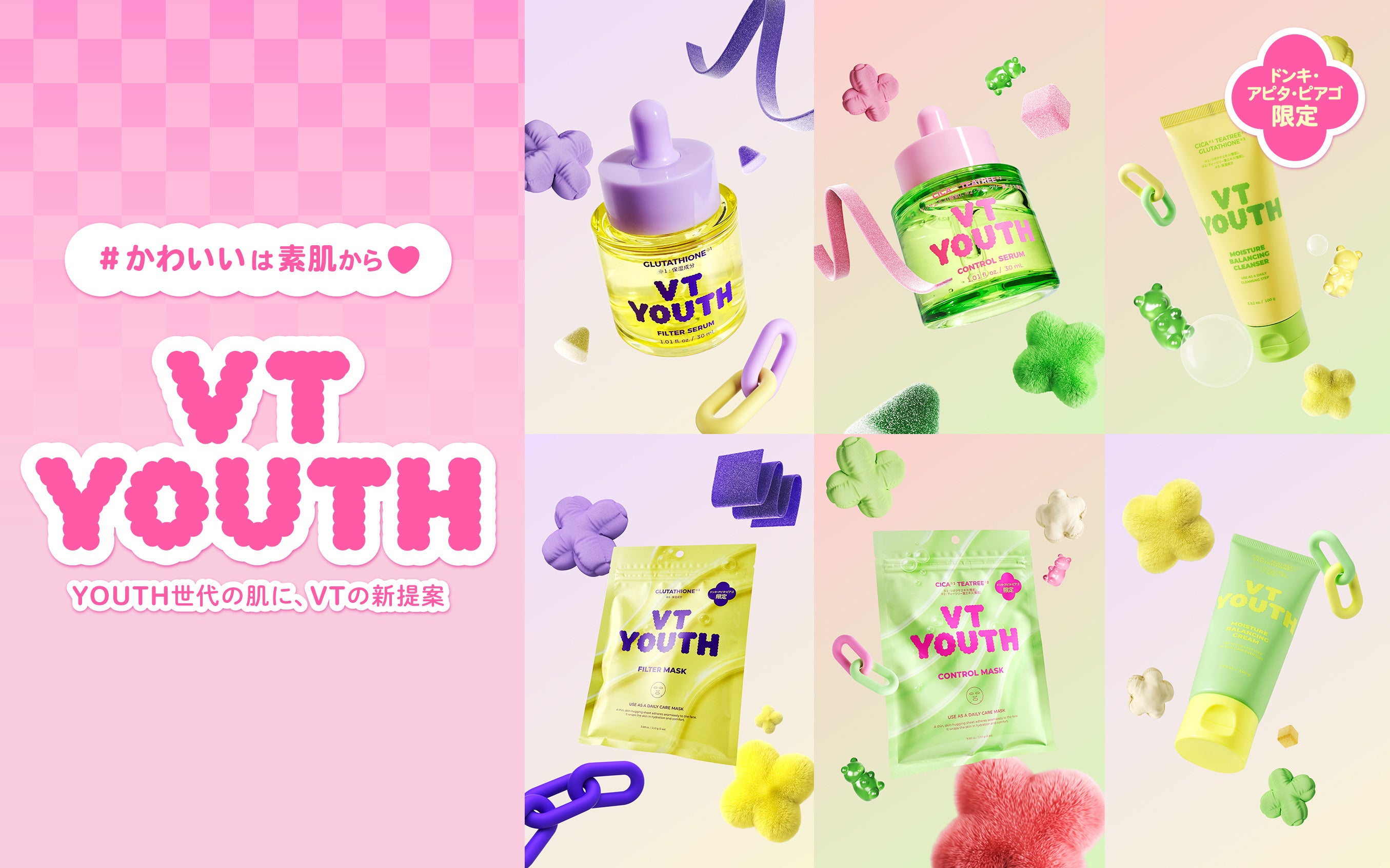 韓国発のスキンケアブランド「VT COSMETICS」は、全国のドン・キホーテ系列店舗/アピタ/ピアゴ限定で、YOUTH世代に向けた新ブランド「VT YOUTH」を、2026年4月8日(水)より展開開始いたします。