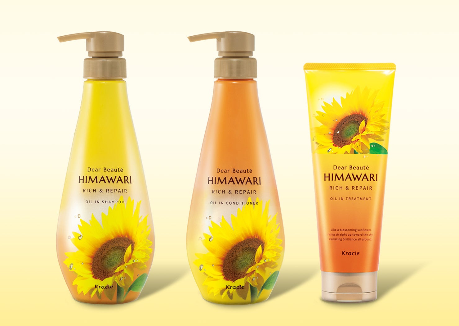 共通特長成分「プレミアムヒマワリオイルEX」配合で、髪ゆがみの原因を髪の内部と外側からトータルケアする「ディアボーテHIMAWARI」。「オイルイントリートメント」は、「高機能ひっぱりケア」を採用し、ブラッシングなど日常のひっぱりによって起きるゆがみをケアします。また、「湿気ケア」もできるので、湿度が高まる夏季に向け、デイリーケアとして取り入れていただくのもおすすめです。