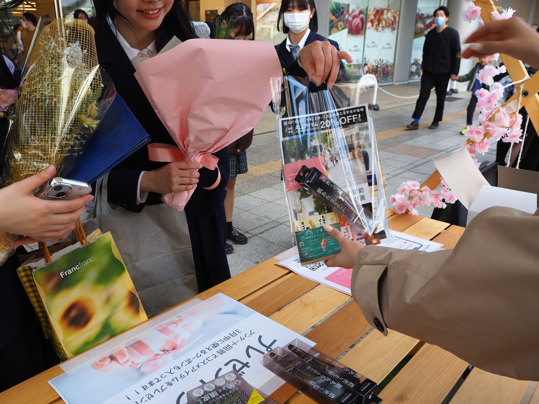 さらに、地域の皆さまから卒業生へのエールを書き込む「桜メッセージボード」や「1年後の自分へ手紙を書く」企画も実施され、世代を超えた交流と未来への意識を育む場となりました。