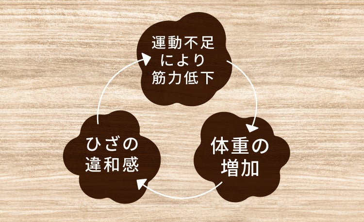 しかし、ひざは日常の動作を支える重要な関節であり、違和感をきっかけに動くことを避けるようになると、歩く距離が減り、筋力が低下し、さらにひざへの負担が増す——という悪循環に陥りやすいことが知られています。