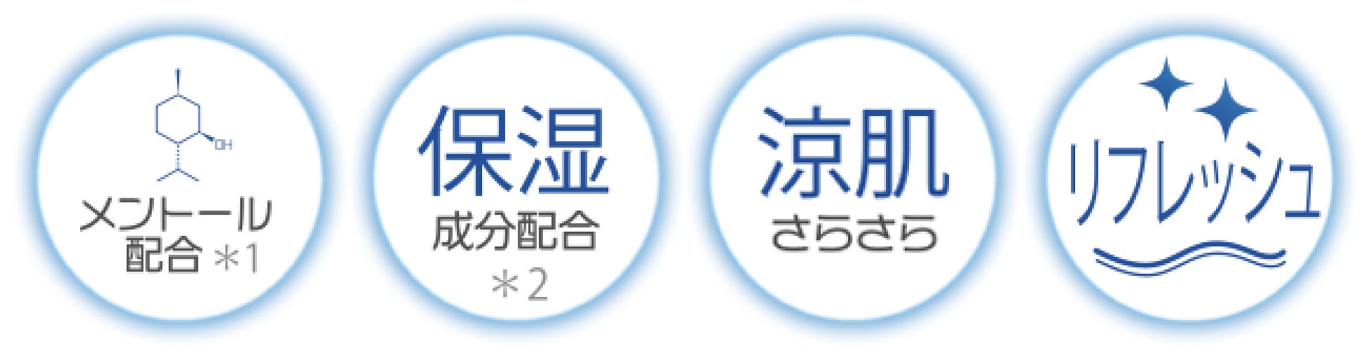 爽やかなメントール(*1)とミントの香りでリフレッシュ。ハンディファンと併用すれば、ひんやり感がアップします。コンパクトサイズなので携帯に便利。