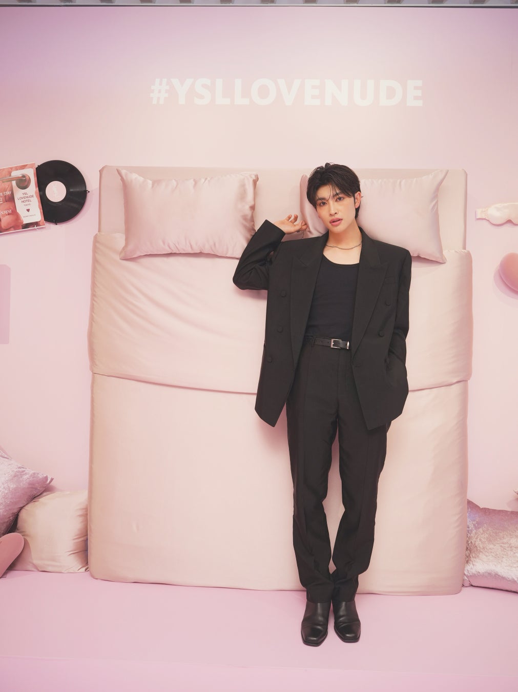 「YSL LOVENUDE」のセンシュアルなピンクヌードカラーに包まれた“YSL LOVENUDE HOTEL TOKYO”は、1FがDJブースも設置した『RECEPTION』フロア、2Fは、「YSL ラブヌード リップスティック」の“ふわじゅわ”体験を各ブースでお楽しみいただける『LOBBY GAME』フロア、3Fは、「YSL ラブヌード リップスティック」を始めとする、YSLのアイコンリップやフレグランスをご自由にお試しいただける『GUEST ROOM』フロアで構成された、YSLだけの特別なフォトジェニックなホテルです。