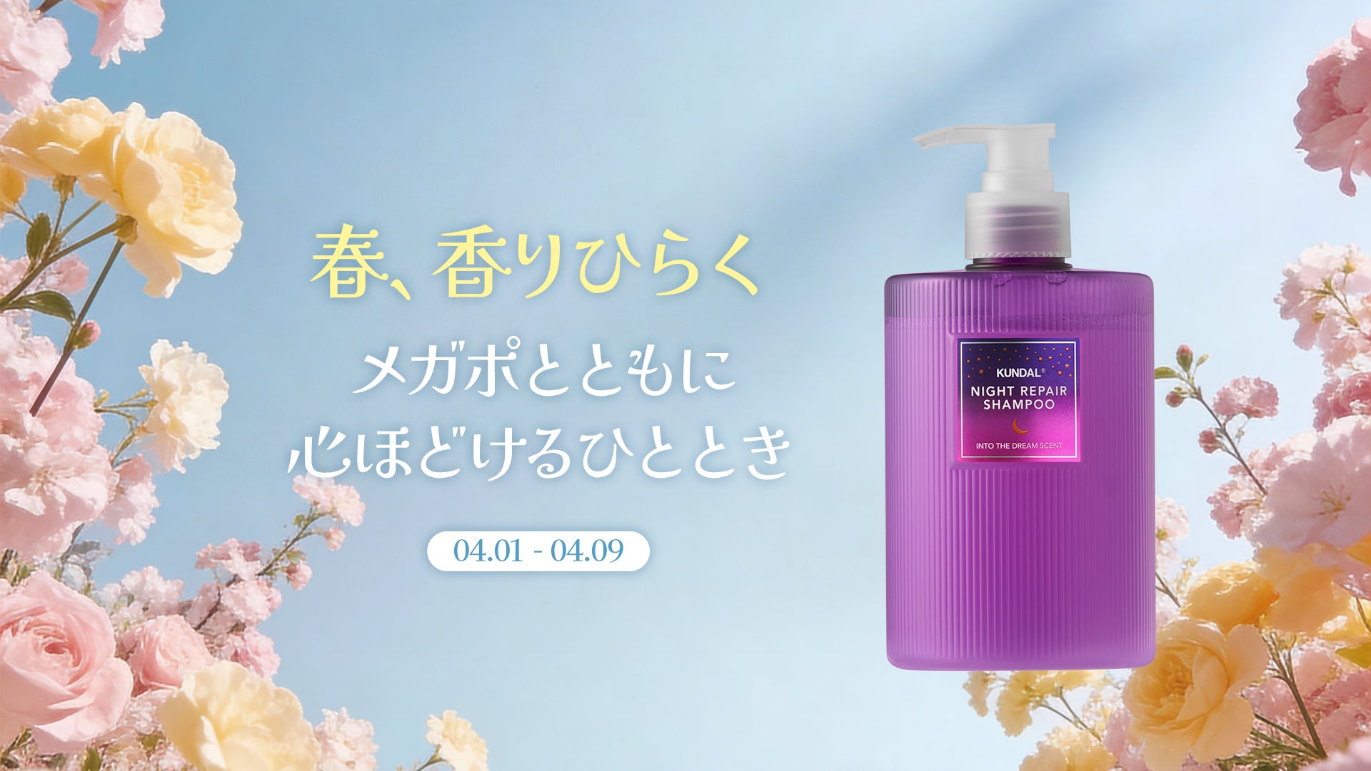 新しい環境や出会いが増えるこの季節に、KUNDALは“香りで彩る新しい自分”をテーマに、日常に心地よいリフレッシュをお届けします。ヘアケア・ボディケア・リビングケアまで、人気商品から新商品までを取り揃え、特別価格でご用意いたしました。