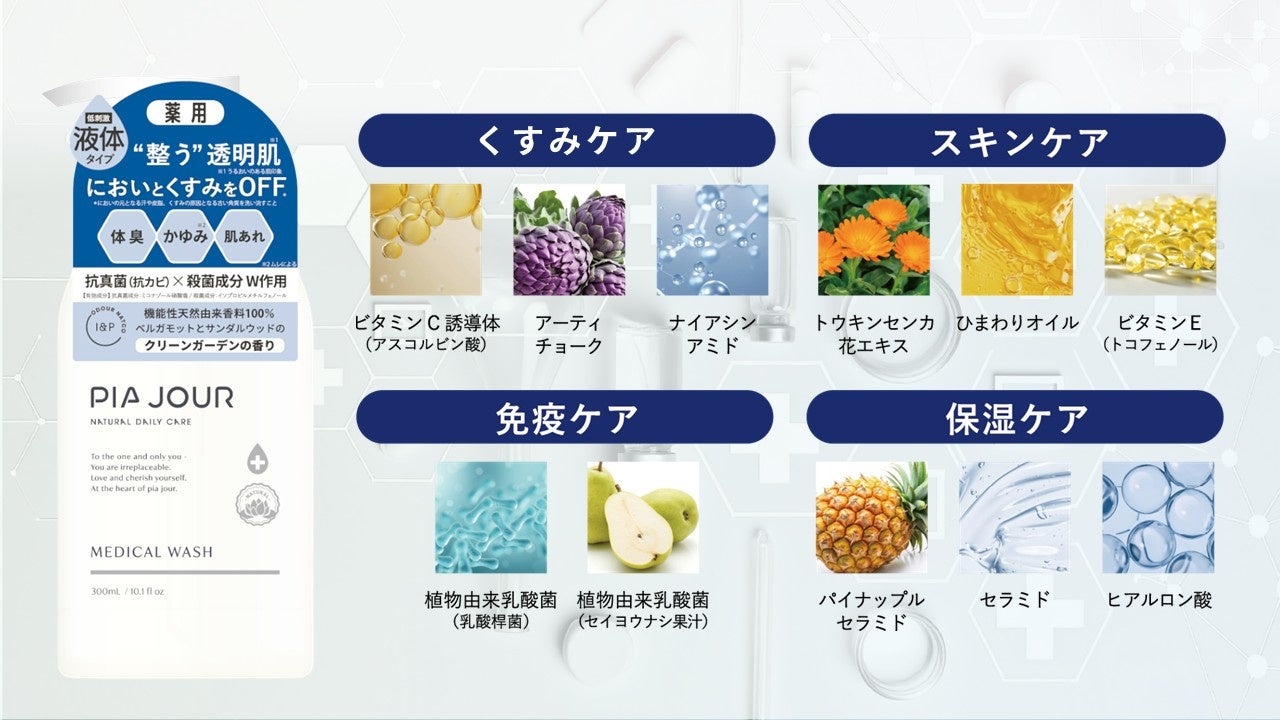 「ピアジュール メディカルシリーズ」は、”洗うこと”に着目し、日々のバスタイムを予防ケアの時間へと変えるアイテムです。