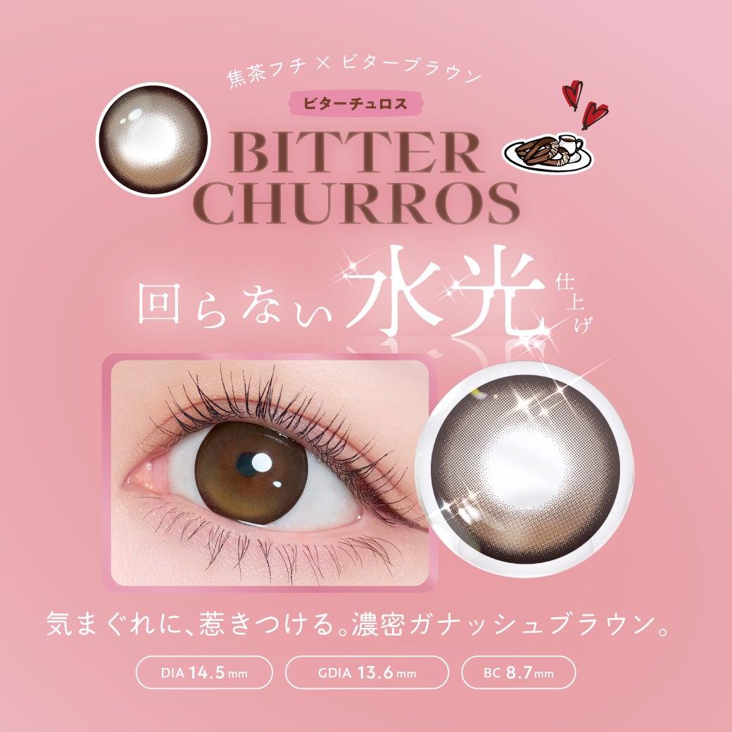 きゅるっと盛れする白っぽベージュで写真映えも叶う「シュガーチュロス」と、ビターブラウンで日常使いにぴったりな「ビターチュロス」。