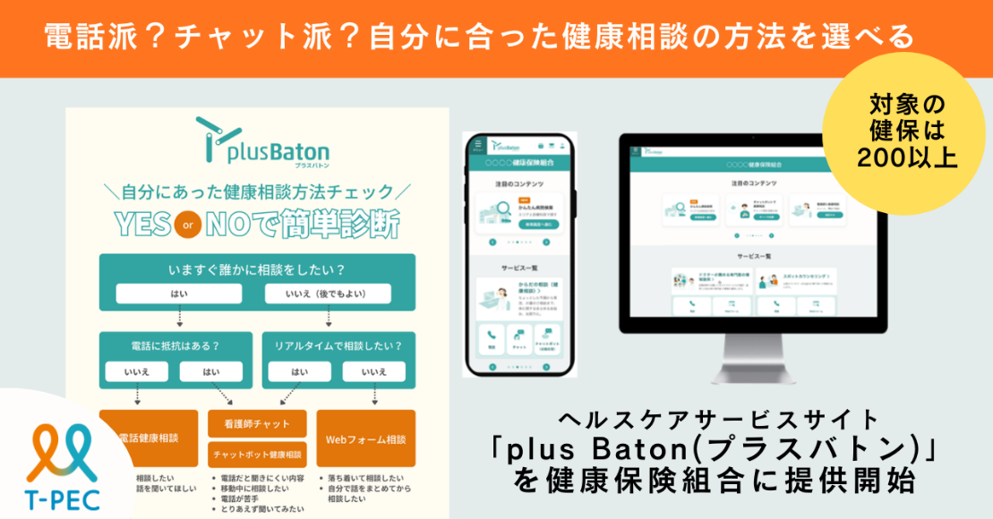 電話派?それともチャット派?自分にあった健康相談方法を選べる ティーペック、ヘルスケアサービスサイト「plus Baton(プラスバトン)」を 健康保険組合200団体以上に提供開始