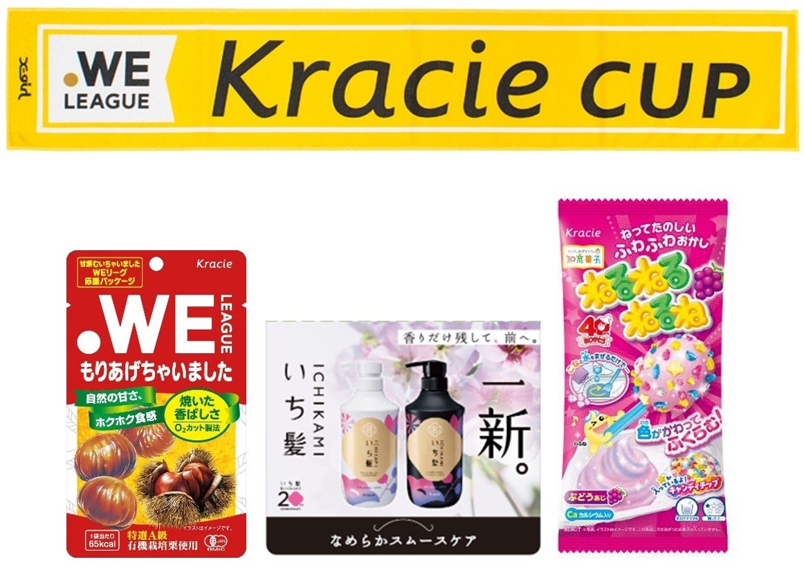 そして入場ゲートでは、「2025/26 WEリーグ クラシエカップ」の開催を記念して制作した大会記念タオルと、「甘栗むいちゃいました WEリーグ応援パッケージ」(非売品)、ロングセラーブランド「いち髪」のサンプルと「ねるねるねるね ぶどう味(40周年パッケージ)」を先着でプレゼント!
