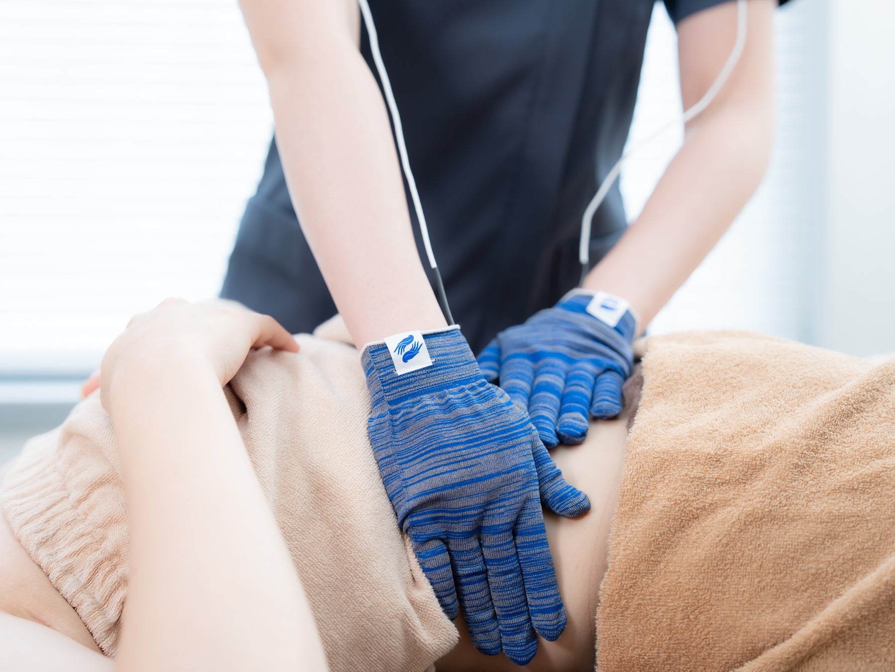電気の神経反射を利用し、深部の筋肉や筋膜に直接アプローチします。施術者が指や腕に強い力を込める必要がなく、撫でるような優しいタッチで十分な効果を発揮します。これにより、ベッド上での無理な姿勢による腰痛や、手指の関節を痛めるといった「介護職の職業病」リスクを大幅に軽減。スタッフが長く、健康に働き続けられる環境づくりを直にサポートします。