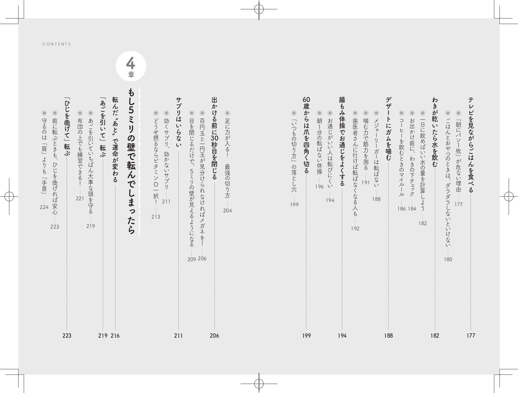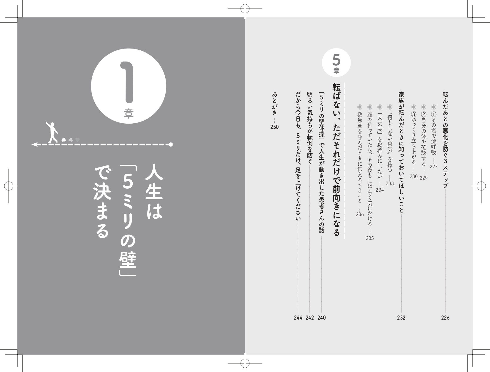 本書では、筋トレやウォーキングだけでは対応しきれない転倒リスクに対し、「わずか5ミリの段差でつまずかない身体」をつくるための具体的な方法を紹介しています。
