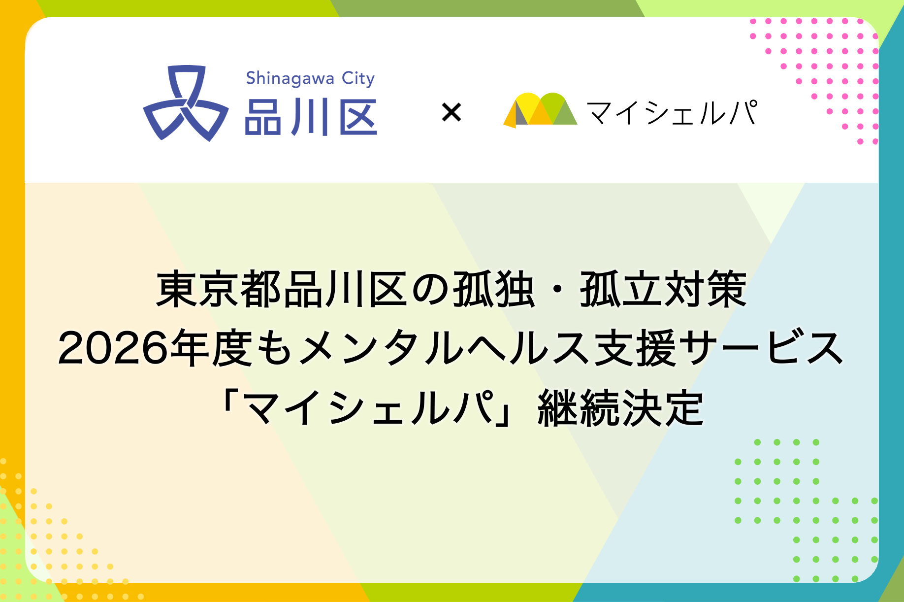 メンタルヘルス支援サービスを展開する株式会社マイシェルパ(以下、マイシェルパ)は、東京都品川区(以下、品川区)の孤独・孤立対策に、オンラインカウンセリングを2025年4月より提供しています。この度、品川区では2026年度も、孤独・孤立対策としてマイシェルパのオンラインカウンセリングの継続を決定いたしました。