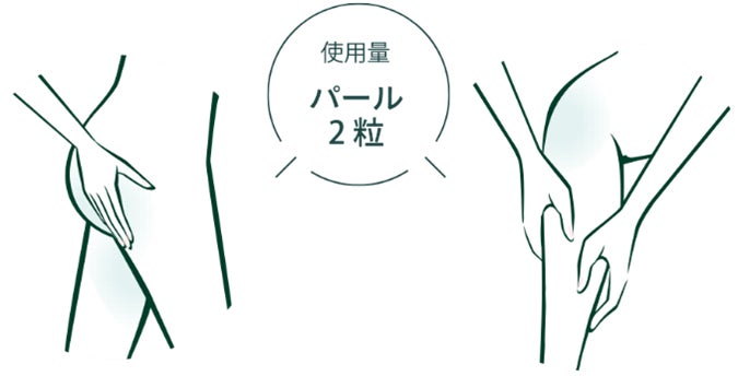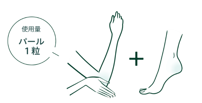 肘・かかと:パール1粒分