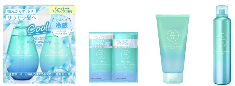 『ヒリツ クールシリーズ』は、夏のヘアケア・ボディケアのニーズに応える全4種のラインナップで展開。すべての商品に、心地良い清涼感を与えるハッカ葉油※1またはハッカ油※1とメントール※1を配合しています。「シャンプー&トリートメント」には紫外線ダメージケアや速乾成分を配合。「スカルプ&ボディスクラブ」は頭皮&ボディに使える2way仕様で、蓄積汚れやにおいをすっきりリセットします。また、「スカルプ&ボディリフレッシャー」も2way仕様のドライシャンプーで、ひと吹きするだけで汗や皮脂を瞬間リフレッシュ。シリーズ共通の、涼やかで上品な「フローズン ペアー&ムスク」の香りを採用いたしました。