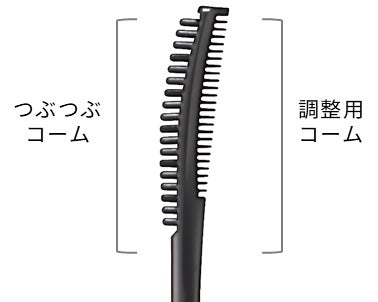 ●新開発 とかすだけで均等にセパレートした束感まつ毛に整える「つぶつぶコーム」採用。