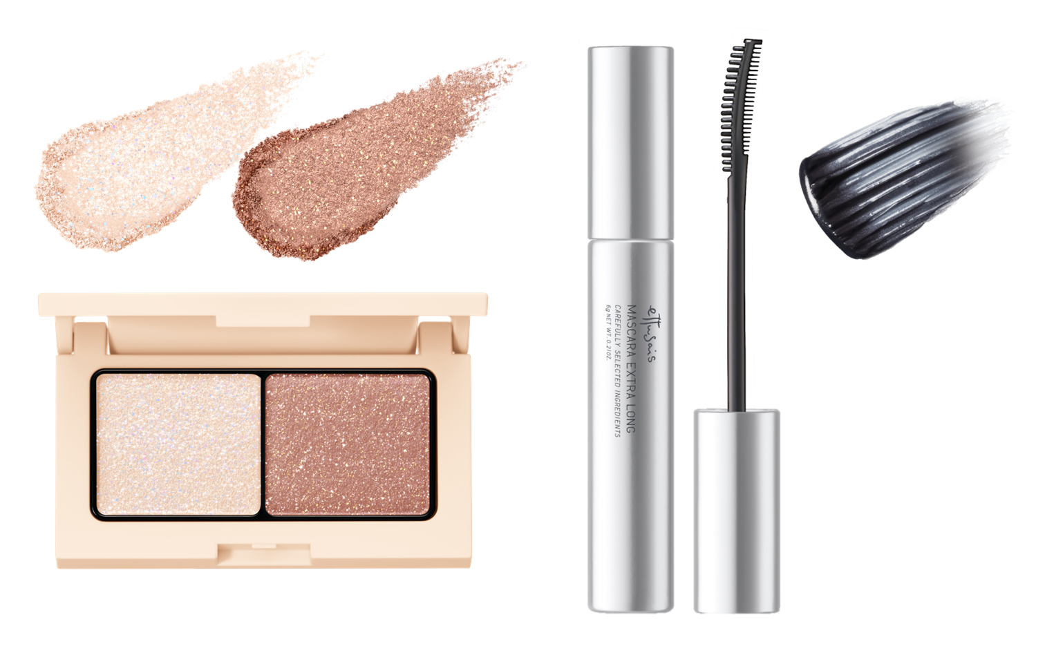 透明感ベージュカラーにブルーのパステルパールを配合した“大粒パールカラー”と、レッド&ゴールドパールを忍ばせた肌なじみの良いシアーブラウンの“繊細パールカラー”を重ねることで、まぶたにきらめきと自然な立体感を演出します。
